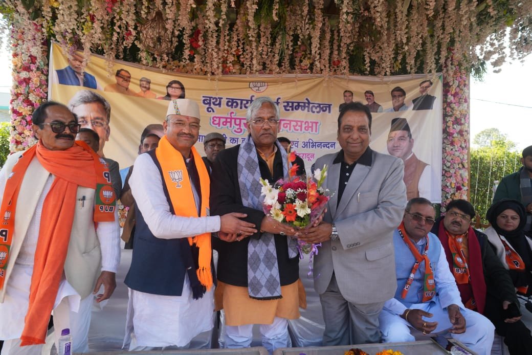 धर्मपुर विधानसभा में हरिद्वार लोकसभा से सांसद एवं पूर्व मुख्यमंत्री त्रिवेंद्र सिंह रावत जी ने सभा को संबोधित करते हुए कहा कि भारतीय जनता पार्टी ने कर्म सील जुझारू और ईमानदार छवि के रूप में सौरभ थपलियाल को महानगर महापौर का प्रत्याशी घोषित किया है मुझे धर्मपुर विधानसभा के समस्त कार्यकर्ताओं एवं सम्मानित जनता से यह निवेदन करना है कि आने वाले समय में 23 जनवरी को भाजपा के कार्य के दम पर जो की हमारा प्रत्येक बूथ पर कार्य करता उपस्थित है बूथ पर समितियां बनाई गई हैं हमने अपनी कार्यशैली के अनुसार पन्ना प्रमुख तक बनाए हैं हम सभी की नैतिक जिम्मेदारी है कि भारतीय जनता पार्टी ने समाज हित पर अनेक योजनाओं के माध्यम से कार्य किए हैं हमें बस उन योजनाओं के माध्यम से समाज के बीच में जाकर भाजपा के पक्ष में वोट की अपील करनी है मुझे उम्मीद है इस विधानसभा से अधिक से अधिक मतों से सौरभ थपलियाल को विजई बनाएंगे।