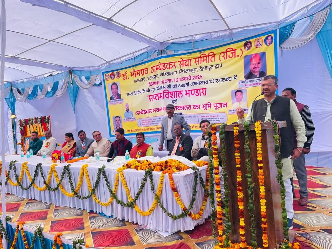 उसके बाद संत शिरोमणि श्री गुरु रविदास जी” के जयन्ती के अवसर पर धर्मपुर विधानसभा के अंतर्गत चमनपुरी पुलिस बैरक में बनने वाले ‘अम्बेडकर भवन’ एवं ‘पुस्तकालय’ का भूमि पूजन किया व इस अवसर
