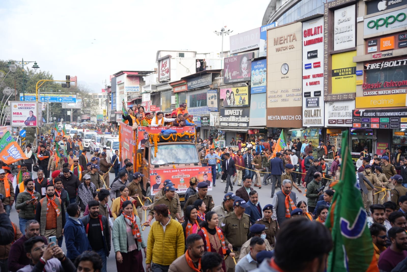 रोड शो में कैबिनेट मंत्री गणेश जोशी सतपाल महाराज भाजपा महामंत्री संगठन अजेय कुमार जी चुनाव संयोजक कुलदीप कुमार महानगर अध्यक्ष सिद्धार्थ उमेश अग्रवाल विधायक गण विनोद चमोली खजानदास बृजभूषण गैरोला सुनील उनियाल गामा महिला मोर्चा राष्ट्रीय महामंत्री दीप्ति रावत दर्जाधारी मंत्री श्रीमती विनोद उनियाल विश्वास डाबर जोगेंद्र पुंडीर श्याम अग्रवाल कुलदीप बूटोला भगवत प्रसाद मकवाना मानिक निधि शर्मा राजेंद्र ढिल्लों संतोष सुनील शर्मा संकेत नौटियाल संदीप मुखर्जी राकेश डोभाल दिलीप कंडारी अक्षत जैन आशीष शर्मा विपिन खंडूरी देवेंद्र बिष्ट पारस गोयल तरुण जैन राजेश छेत्री आलोक शर्मा पूनम शर्मा भावना शर्मा संध्या थापा कमलेश रमन लक्ष्मी अग्रवाल गीता अंजलि रावत शैलेंद्र तिवारी आशीष रावत राहुल रावत अंशुल चावला शुभम हिमांशु कुमार अवधेश तिवारी आदि हजारों कार्यकर्ता उपस्थित है